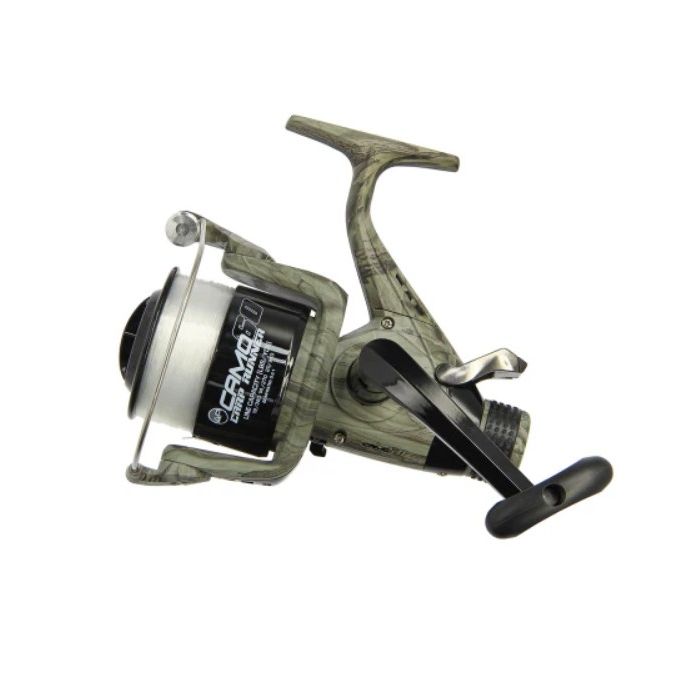 A 3BB full camo carp runner reel, spooled with 12lb line.