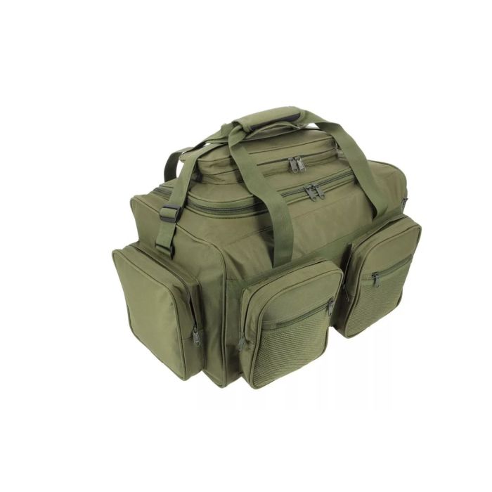 This green fishing bag has a spacious main compartment that offers space for your reels, bait boxes and other accessories. In addition, it offers 5 practical outer pockets in which you can store smaller items such as bait, leaders, lines and tools.