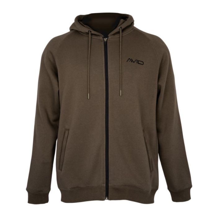 Peat brown, full-zip hoodie with a large rear 3D Avid fish heads print