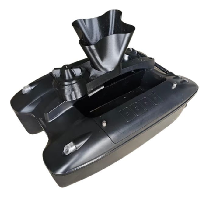 Very unique and original wind-up bait spreader (@WUBS) we have developed and patented. Stand alone pure mechanical add on for the DEEPER QUEST baitboat which works with all DEEPER QUEST boats as it is absolutely independent from the boat electronics. The @WUBS is activated once the right hopper doors are open and you still can use the full capacity of both hoppers.
