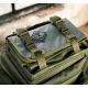 The ground sheet sits neatly and securely on top of the rucksack, attaching via two reinforced loops that connect directly to the rucksack clips for easy transport.