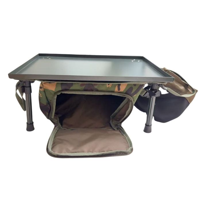 The spacious bivvy table is combined with a handy, built-in storage bag underneath which provide ample storage for tackle boxes, hook baits, cookware equipment or various other items. Keep things tidy, whilst also being easily accessible throughout your session.