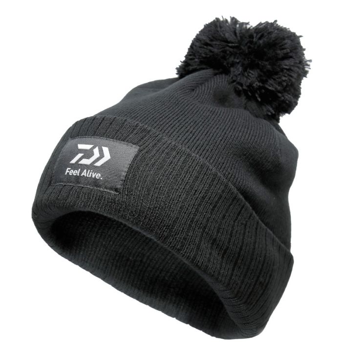 Daiwa Feel Alive Bobble Hat, warm and comfortable stretchy headgear ideal for wearing without a hood.