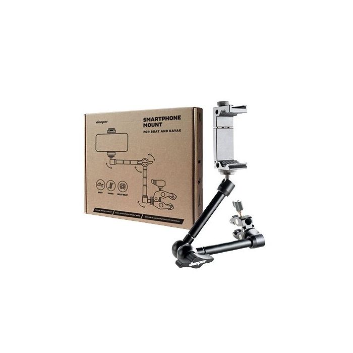 It fastens to the vessel with the C-clamp (for boats) and the T-bolt (for kayaks). The magic arm on the Smartphone Mount easily adjusts its position for comfortable hands-free fishing and Deeper sonar data monitoring on your smartphone screen