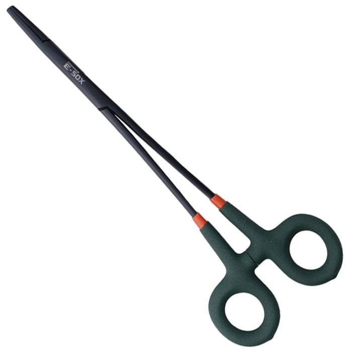 Drennan E-SOX Long Forceps 25cm, Drennan E-SOX Long Forceps 25cm are rafted from high carbon steel with a durable matt black PTFE finish, they offer long-lasting strength and corrosion resistance. The soft-touch coated handle ensures a comfortable, non-slip grip, making them an essential tool for safe and efficient hook handling. Featuring short serrated jaws that securely grip and remove hooks while keeping your hands safely away from sharp points.