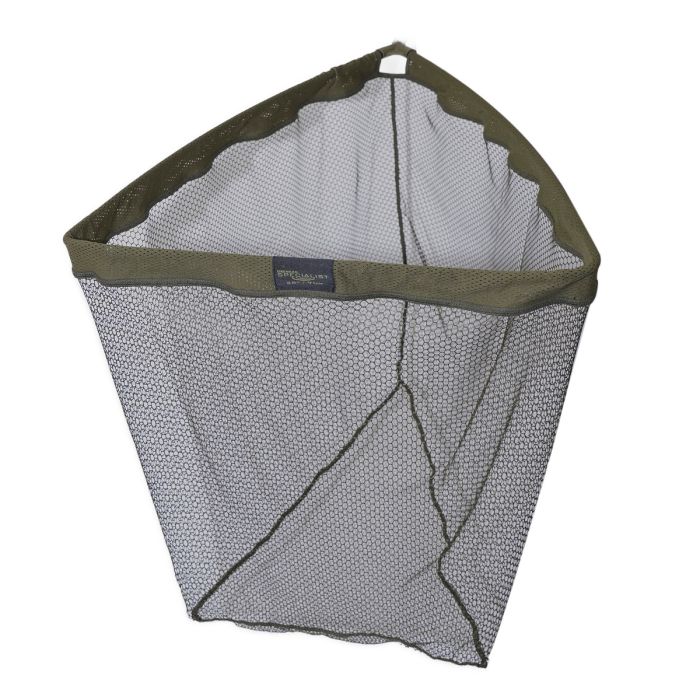 The soft hexagonal olive-green mesh is larger on the sides to reduce resistance when scooping or using in flowing water.