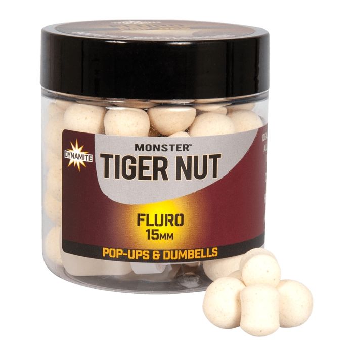 Dynamite Baits Monster Tigernut Pop-Ups - White Fluro, Highly-visual white hookbait which standout in all water conditions perfect for fishing over the foodbait or as a single.