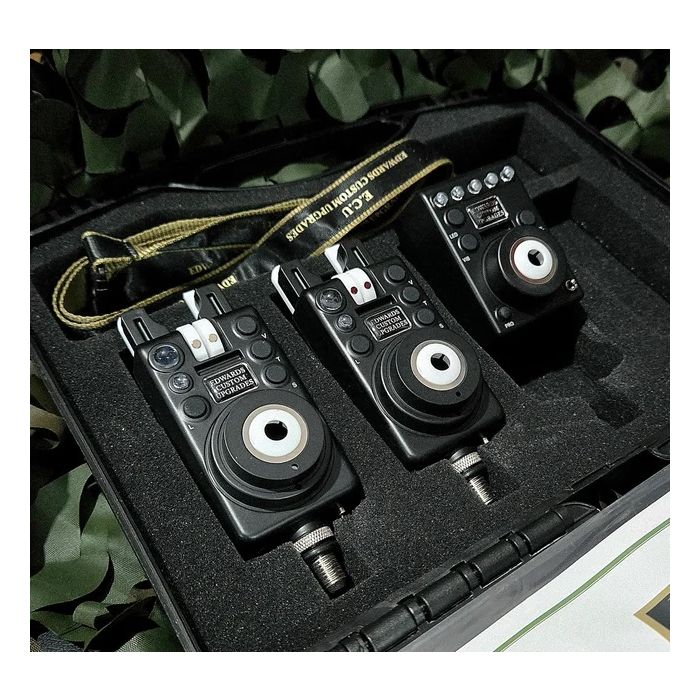white flouro kit featuring white storm ears, white rod riser ears, white speaker trim, white roller wheel. firmly old skool and super Carpy, a great addition alongside our other bite alarms.