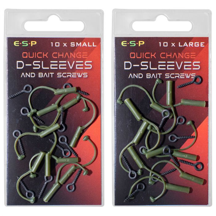 The sleeve is a snug fit over the hook eye and swivel crook and makes changing the hook quick and easy. Available in two sizes to suit different hooks. 10 sleeves & 10 bait screws per pack.