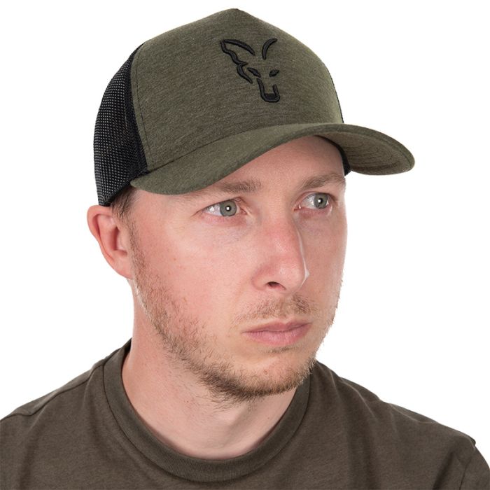 Fox Collection Trucker Cap Green/Black a smart all green baseball cap with black fox detailing. With mesh air flow panels to help you keep cool and an adjustable snap adjuster.
