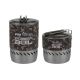 - In the 1.25l version the infrared stove can be stored inside the pot together with a 230g gas cannister or alternatively a large 500g cannister can be stored for compact storage.