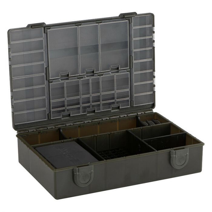 The base of the Tackle Box has been designed to accommodate the all new Standard and XL Internal Compartment Boxes, Adjustable Compartment Boxes, Hook Boxes plus the ingenious Leader Racks in Standard and XL. The box features 3 long, 2 short and 1 medium divider these are removable and segregate the base and allow you to customise to your preferred configuration. The spacing of the divider slots has been carefully considered to make the most of the space available, ensuring the internal compartment boxes don’t rattle around in wasted space and keep all manner of end tackle secured efficiently. Anything from rig tools and standard hooklength spools to larger leader style spools can perfectly fit in this box.
