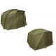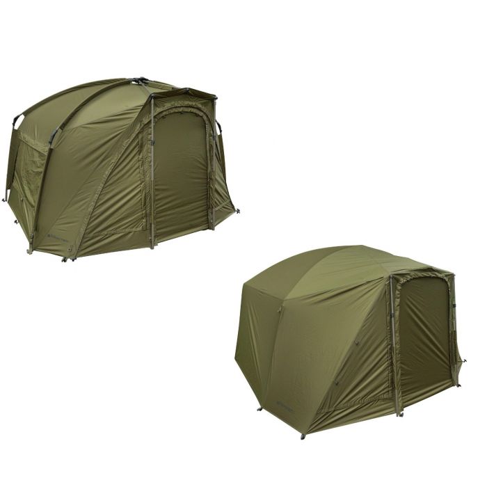 The bivvy is made with khaki-coloured Ven-Tec fabric and a "blackout" laminate lining with a hydrostatic head of 20,000. It has a patented ETS boss, a reinforced aluminium skeleton for quick setup and pack down, and a lightweight aluminium frame with a high flat back for increased usable space and headroom. The FRONTIER X BIVVY also has advanced camo mozzy vents on both sides and at the rear and all-weather ventilation pegging points that allow airflow even in the rain. The bivvy has a solid infill panel with three door options - solid, clear, and camo mozzy mesh - and four internal mesh storage pockets. It comes with heavy-duty groundsheet, heavy-duty cam lok storm poles, and a double-zipped carry bag. The FRONTIER X BIVVY is made of 100% polyester and is suitable for one person or more, measuring 260 x 198.5 x 140cm and weighing 14kg. Its packaged dimensions are 147 x 25cm Ø.