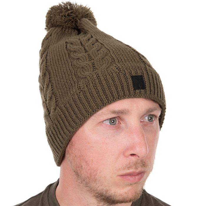 The Fox Khaki Knitted Bobble Hat, a fleece lined one size fits all hat ideal for the winter months.