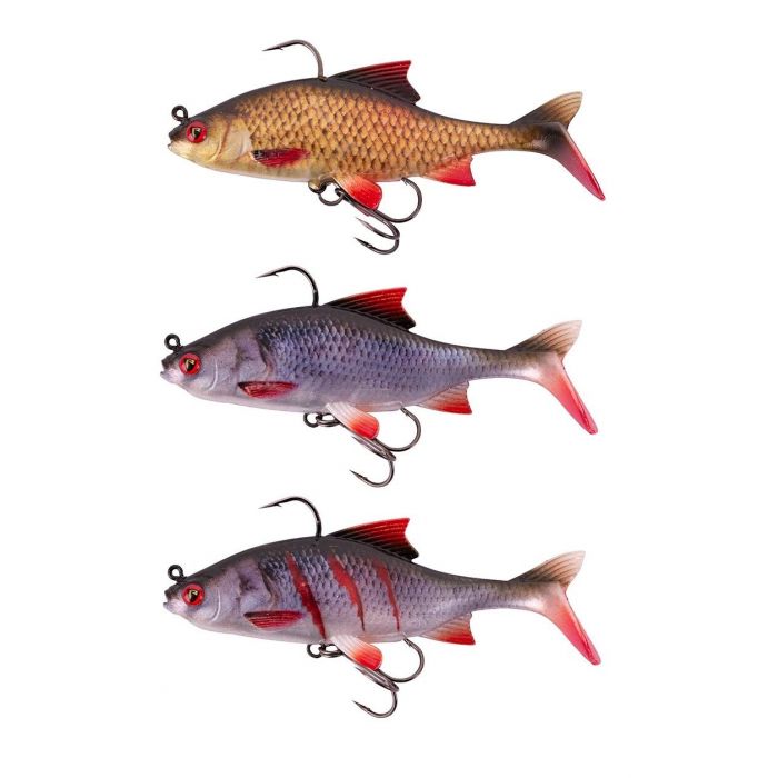 A brilliantly life-like lure based on the ultimate prey fish, the roach, the new Realistic Roach Replicant delivers a highly realistic body shape created from the new super resistant lure material. A belly hook rotation system and high-end hooks make for a formidable combination when a fish hits, while the three colour options mean you can ring the changes to get them interested.