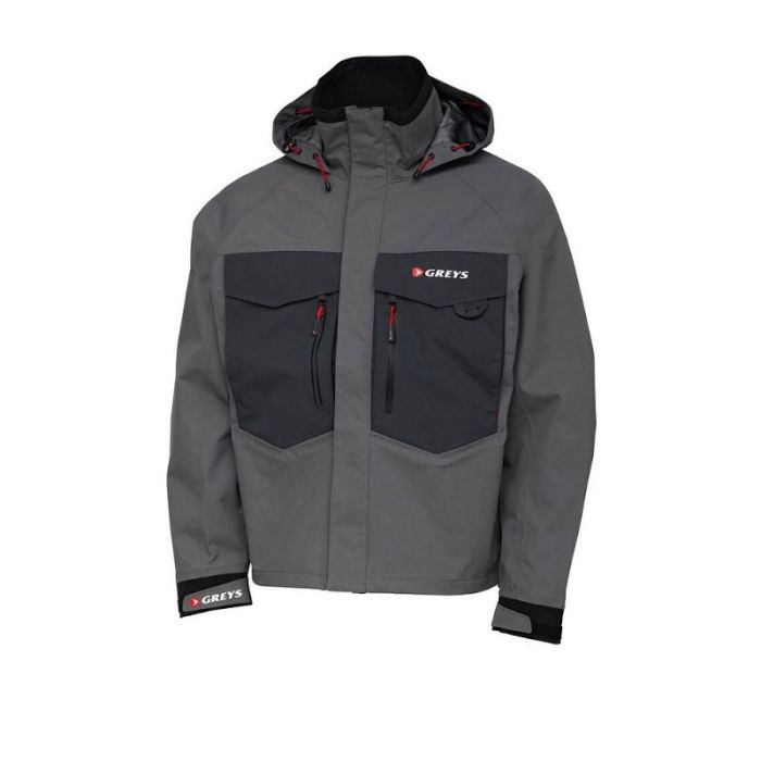 Greys Tital Wading Jackets, high performance waterproof jackets featuring a 15,000mm HH waterproof rating and high 5,000MVP breathability. With three layers of Oxford 160D fabric providing the perfect balance of durability and comfort. With two large chest pockets with flaps, as well as two vertical pockets for leader materials or tools. The tool attachment point on the chest pocket is perfect for attaching items like unhooking pliers and keeping them to hand. On the back, you will find a large chest pocket with drain holes for releasing water when you are wading deep.
