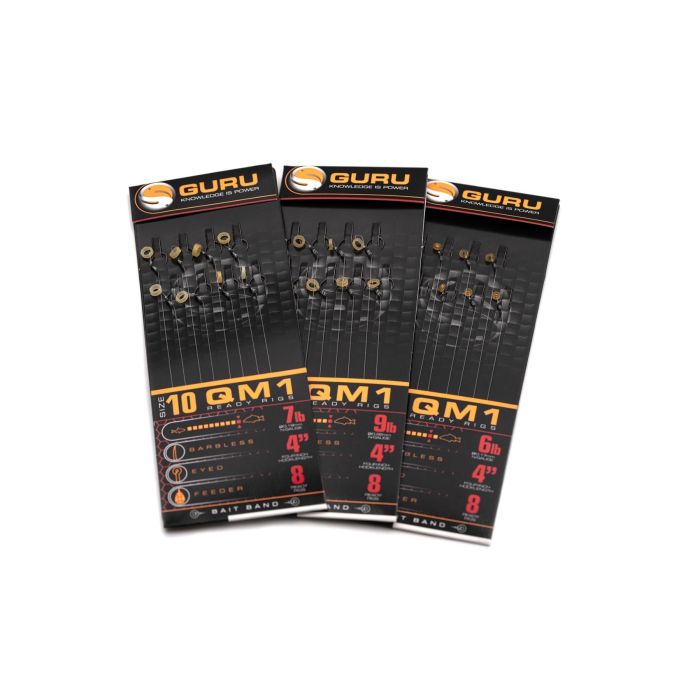 Our QM1 Bait Band Ready Rigs are available in 4” and 15” and cover a wide array of different fishing situations and hookbait options. The 4” Ready Rigs comes pre-tied on our reliable rig boards. The 15” QM1 Ready Rigs come pre-tied on our easy-to-use hooklength spools, which fit perfectly into the Guru Rig Boxes, improving organisation and efficiency.