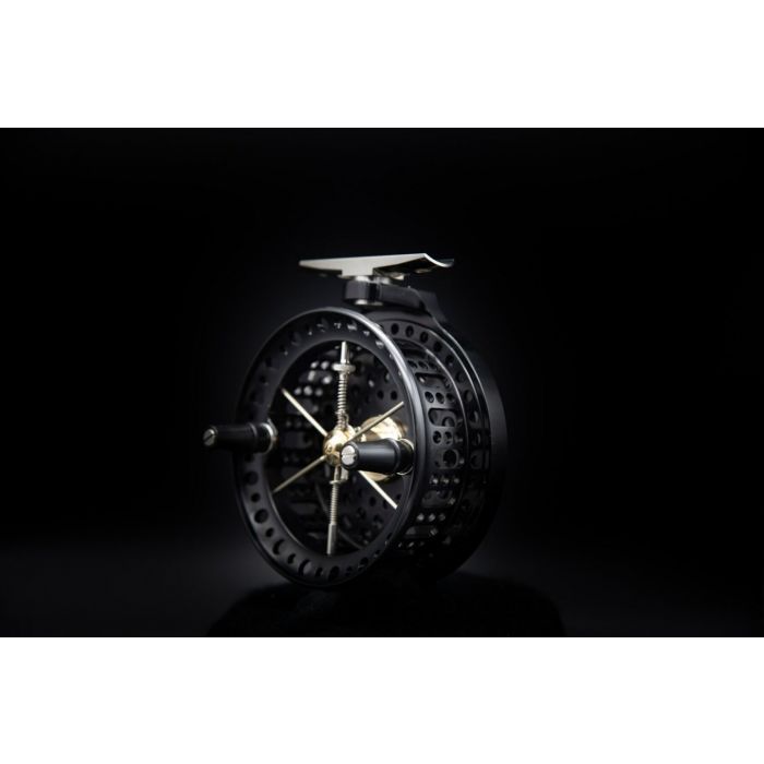 The quick release, ventilated spool is constructed around a centre hub accurately aligned by means of six silver spokes, and houses an improved configuration of double stainless steel bearings. An additional feature is easy removal of the handles, to enable the ultimate purist to hand control the spool for quick line retrieval.