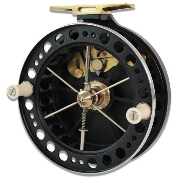 The J W Young River Specialist reel takes centrepin angling with float or feeder to a new level. Traditional Centrepin reels in general were made for the purpose of float fishing here in the UK, and ledgering baits can be difficult with a pin when fast or flooded waters are your chosen venue. With an adjustable tension click check the River specialist reel can be set to deal with fast or flooded water with a flick of a switch. Once the bait has been cast out the angler can engage the click check and increase or decrease the power of the check to stop the line peeling off in heavy water conditions, this also gives the angler a greater resistance when a bite occurs meaning more hooked fish and no over runs. The J W Young river specialist reel features a solid backplate design, Adjustable click check, 2 ball bearings and micro-adjustable disc drag and ivory style handles. The also reel features a polished rim for smooth line control, a beta light slot in the reel seat for night fishing and has been finished in a matt black colour to complement any rod it is fitted to. All J W young reels are made and built in the UK and come supplied in a presentation box with a Handmade reel pouch and certificate of authenticity.