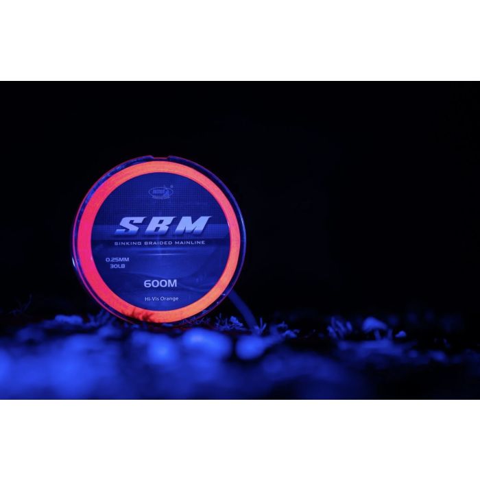SBM High-Visibility Orange - fast sinking braided mainline with exceptional light reflection.
