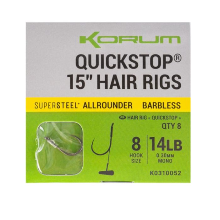 Designed to provide stronger hair rigs when fishing for bigger fish. Increased line diameters and more powerful japanese hooks provide the perfect big fish Quickstop Hair Rig.