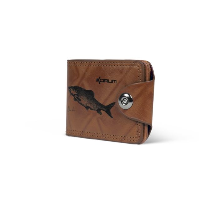 Classic style PU Leather wallet featuring the artwork of angling artist Steve Phillips. Features secure snap closure and minimalist card holders with multiple slots. Ideal gift. 12 x 9.5 x 1.5cm.