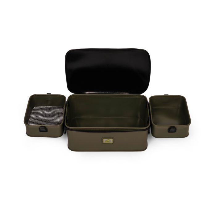 This EVA Tackle & Bait Carryall provides fantastic storage for the modern coarse and feeder angler. Comes with two internal trays, one of which features a 3mm mesh for riddling naturals and groundbaits. These can be clipped to the outside of the bag during use, giving a large workspace. Underneath the trays there is enough room for bait tubs and other baits. Comes with comfortable removable shoulder strap and a super tough zipper. 38 x 24 x 16cm. Trays are 8cm deep.