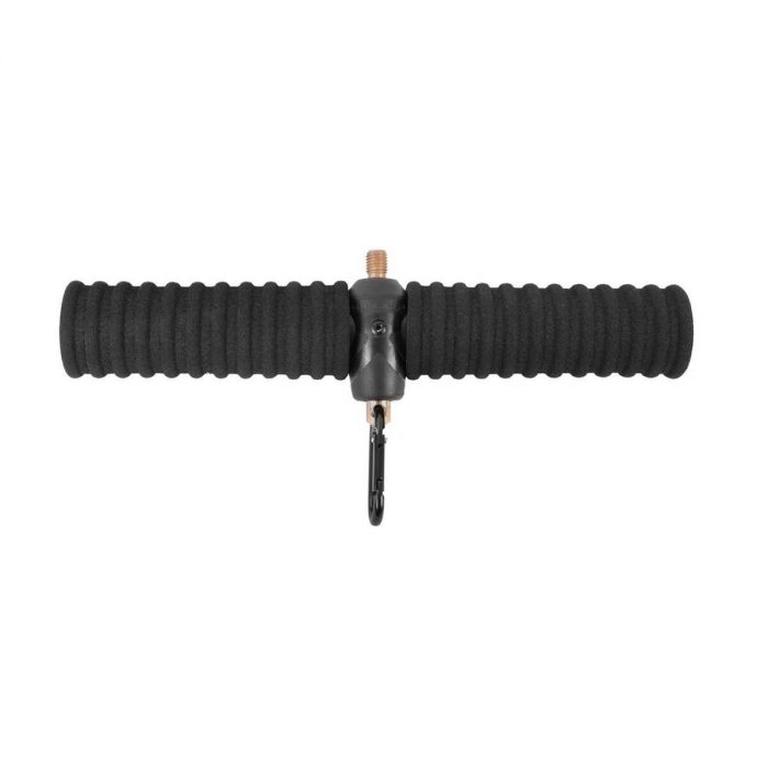 This versatile product is a great compact weigh bar with multiple uses. Can be used as a standard weighing bar, but also features a thread to attach the bar to a landing net handle when pivoting the weigh sling from the ground for a more accurate reading. Complete with strong caribener and soft touch foam.