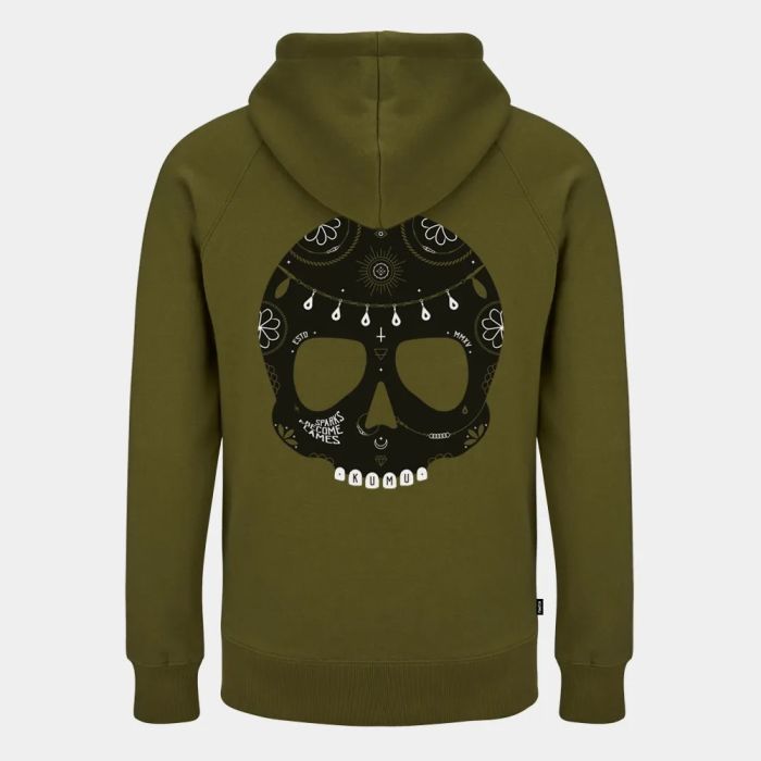 Following the success of our Calaca tee, it was only right that that our Calaca artwork found its’ way onto a hoodie. Constructed from our super warm 320g brushed back fabric with 2 colour ‘Dia Los Muertos’ inspired skull back print and small chest print.
