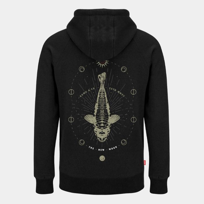 For as long as we can remember, our ‘Make Your Own Luck’ graphic has been one of our most popular lines, and has always lead to the question ‘Are you going to do a version with a mirror carp?” Designed as a set to compliment each other perfectly, our ‘New Moon’ graphic visually plays on the same concept surrounding how moon phases affect our ‘luck’ within angling. 4 colour screenprint on our super soft, luxurious 320g brushed back fabric with antique brass detailing.