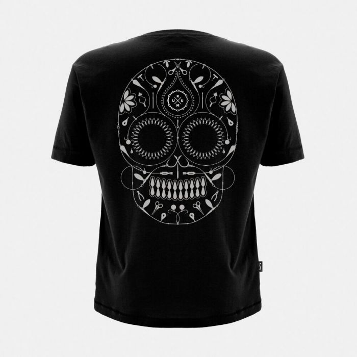 The original just got better. New upgraded materials and new woven hem tag detailing. Ultra soft 165gsm combed cotton. Small chest icon on front. Intricate 'Death Rig' 2 colour; grey and white sugar skull design on rear. Made in the UK.