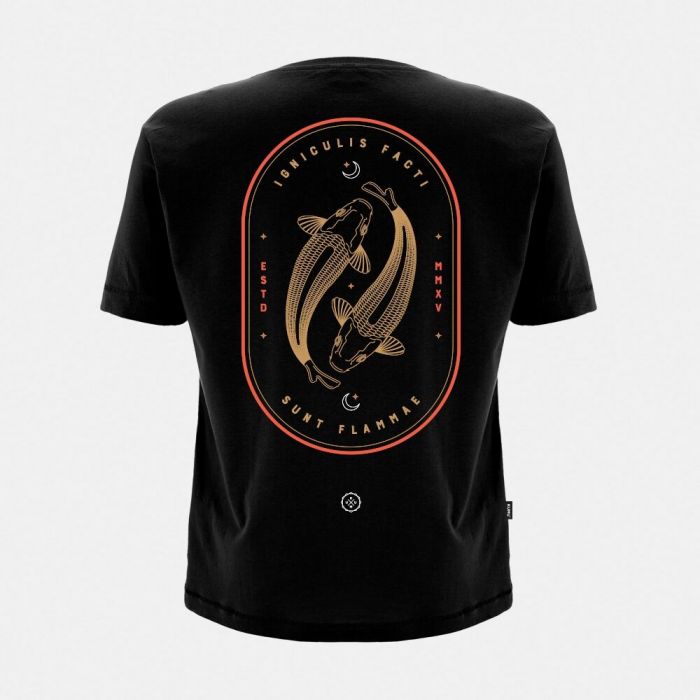 Incredibly detailed ‘swirling fish’ back piece with subtle front chest pocket branding. 140gsm, super soft 100% cotton fabric with hem tab detailing.