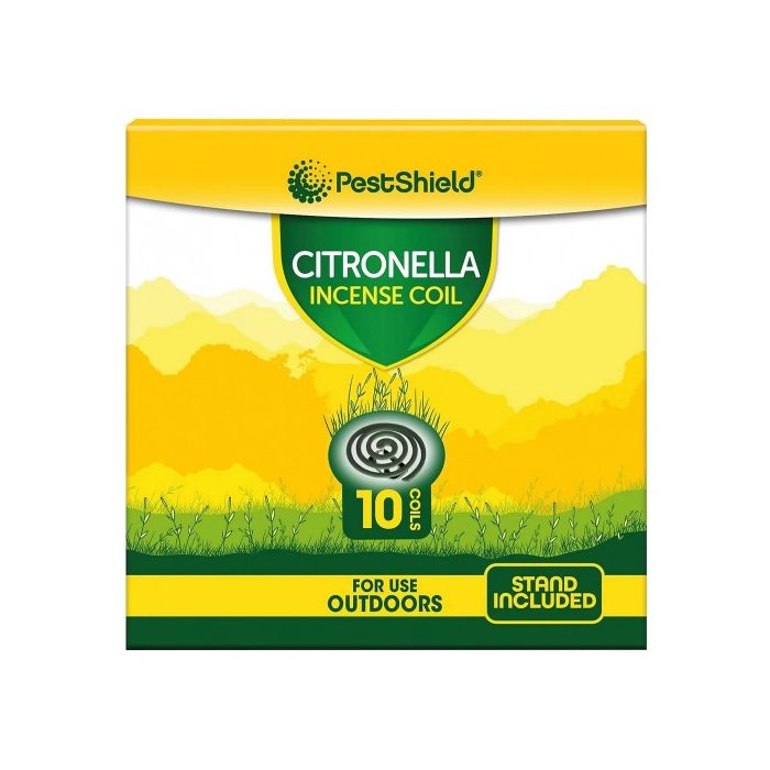 Provides long lasting protection in outdoor environments. The PestShield Citronella Incense Coils include a stand for protecting surfaces.10 coils per pack.