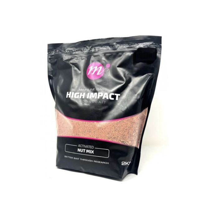 Mainline High Impact Groundbait uses a combination of crushed particles, various nuts and a selection of active enhancers and stimulants.