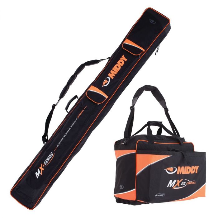 Designed for the serious match angler who wants to keep everything well organised, you get a MX-6TFZ full zip holdall (six-tube) and a MX-50L carryall in this money-saving combo package. Both the holdall and the carryall are made from exclusive 840 denier hard-wearing SkinMax material, and use star-stitching at critical stress points to really ensure longevity and durability. The holdall has additional hard-wearing twin-skin reinforcement at the top and bottom, while the carryall has a super durable hard base for stability when resting on the ground. Features on the holdall includes its long 1.89m length which is ideal for storing 12ft two-piece rods and 16m poles, as well as two gusseted side pockets, a balanced and ergonomic carry handle, padded secure shoulder strap and chunky robust full-length zip with Middy icon pull-tab. Features on the carryall include a detachable padded shoulder strap, padded carry handles, chunky robust zips with Middy icon pull-tabs, an open-style side pocket with adjustable strap closure for storing keepnets or additional items, the aforementioned hard base, and configuration of the main zip opening such that the carryall stays upright and open for ease of accessibility. Both the holdall and carryall are part of the outstanding MX-Series range from Middy and this money-saving combination comes highly recommended.