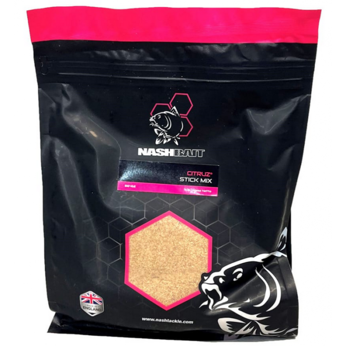 Nash Citruz Stick Mix 1kg, A high attract blend of the four season food ingredients of the Citruz base mix boosted with the deadly Citruz fruit and toffee enhancers that break down fast to release a feeding signal concentrated around the hookbait. For best results mix with a PVA friendly food liquid, such as the Citruz Liquid Bait Soak. Citruz Stick Mix also makes a great groundbait and Method Mix additive. Supplied in 1kg bags.