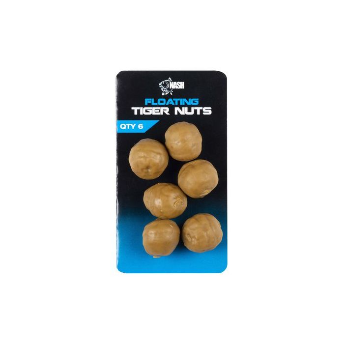 Floating Tiger Nuts vary from 12-15mm for versatility, present multiple smaller baits together or single nuts on larger hooks. Use on their own for guaranteed presentation where crayfish, poisson chat or nuisance fish cause problems with real baits or in combination with Nashbait Sweet Tiger Nuts or Tiger Nut Slush.