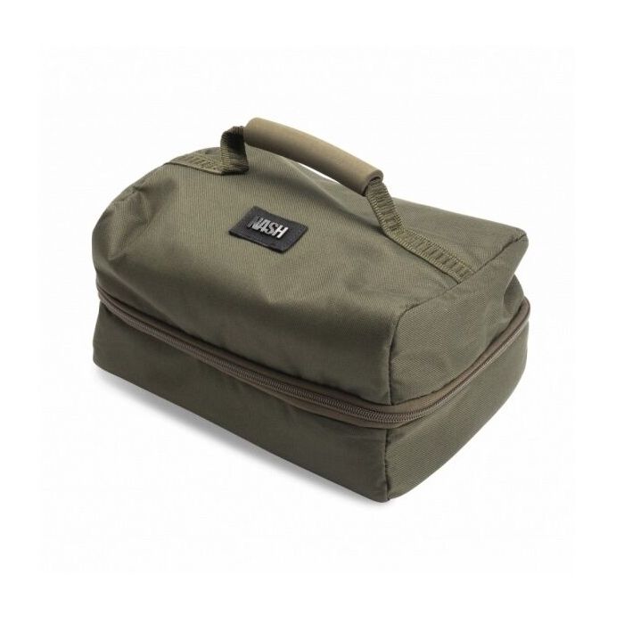- Centre opening tackle storage, holding a medium Box Logix Tackle Box, with zip closure opposite compartment, central divider with full mesh pocket and 15 mesh pockets for Nash TT.