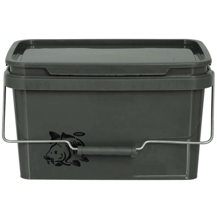 This 5-litre green rectangular bucket is perfect for storing all types of fishing bait. It features an airtight lid with four secure locking sides, ensuring a reliable seal to keep contents fresh. The sturdy metal handle is equipped with a polymer grip, making it comfortable to hold and easy to carry.