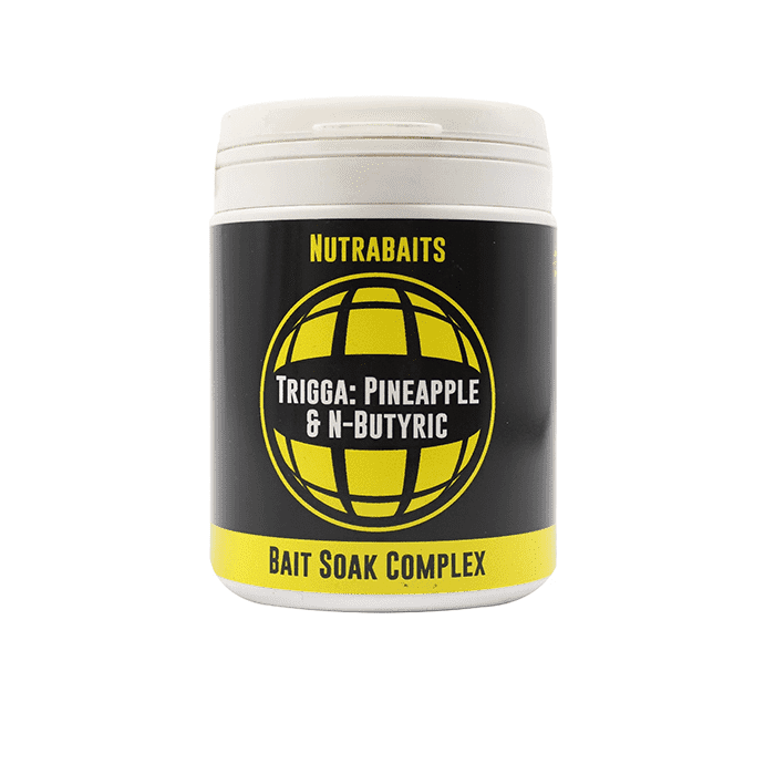 Trigga: Pineapple & N-Butyric Bait Soak Complex is laced with - amongst other things - Liquid Trigga, Pineapple and N-Butyric Acid which has been specifically designed to be used in conjunction with any hookbait that contains the incomparable Trigga attractor package.
