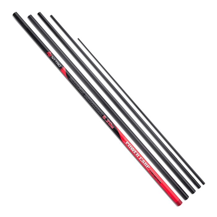 The Nytro Margin Muncher poles are extremely robust and perfectly suited to fishing for big carp in the margins. Made from strong carbon blanks and fitted with a fitted PTFE bushing, winder bung and key. Both models have a push-over design and a CF reinforced second section for extra strength. The choice of a 4.5m or 5.2m version makes this pole ideal for both novice pole anglers and experienced shore anglers.