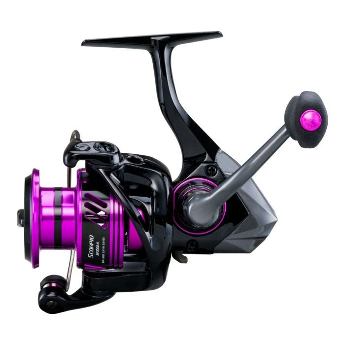 A corrosion-resistant graphite body, finished with exclusive metal parts painted in black and purple – and that’s just the body. The Scorpio Spinning reel features a quick-set infinite anti-reverse for jaw-shattering hook-sets, and the proprietary Cyclonic Flow Rotor technology to increase the airflow throughout the ported rotor, minimizing the risk of corrosion.