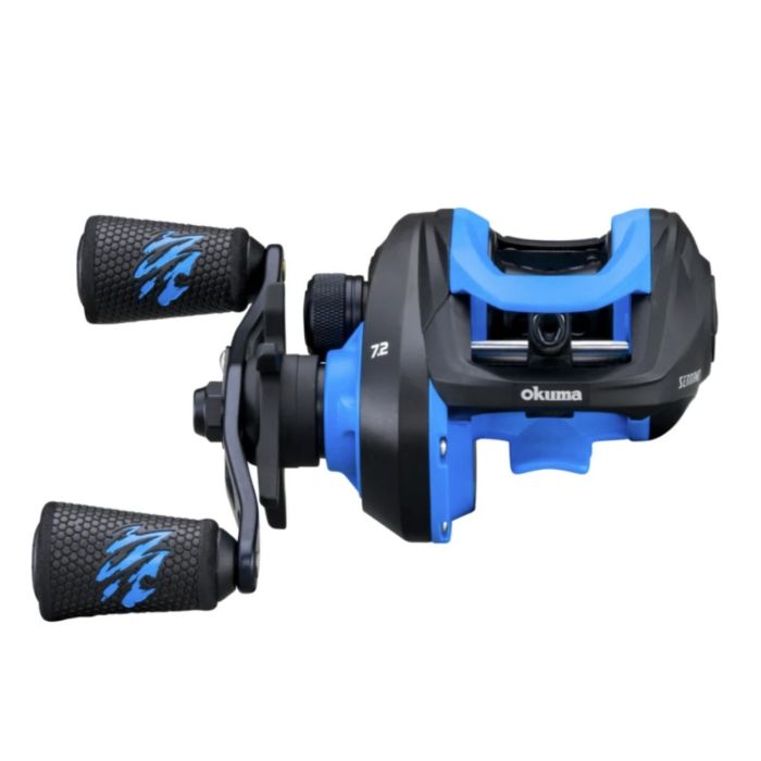 Okuma’s new Serrano reels feature a lightweight, corrosion-resistant graphite body and side plates and are designed with a new, more compact body, all fitting nicely in the palm of your hand. Within this new design you will find the Serrano feature-packed, sharp to look at, and priced right. The Serrano features a 6BB + 1RB precision stainless steel bearing drive system for long, smooth casting and the Quick-Set anti-reverse bearing bodes well for solid hook-sets. The precision-cut, high-strength brass main and pinion gears are smooth-running and very durable. The Serrano has plenty of stopping power with multi-disc drag washers for consistent performance. And gone are the days of the professional overrun with the externally adjustable magnetic cast control system that helps to slow the spool in conditions that call for extra control and finesse. Speaking of spool: the Serrano is built around a 33.5mm machined aluminum, black anodized spool bringing the overall size of the reel down to a compact platform. Another great feature of the Serrano is the double paddle 95mm aluminum swept handle arm with comfortable handle knobs developed from golf grip material for all day cast and retrieve comfort. With a 6.5:1 and 7.2:1 gear ratio, you have a couple of options to choose from. This reel also matches up nicely with the Okuma Serrano series of rods that are currently in the Okuma lineup.