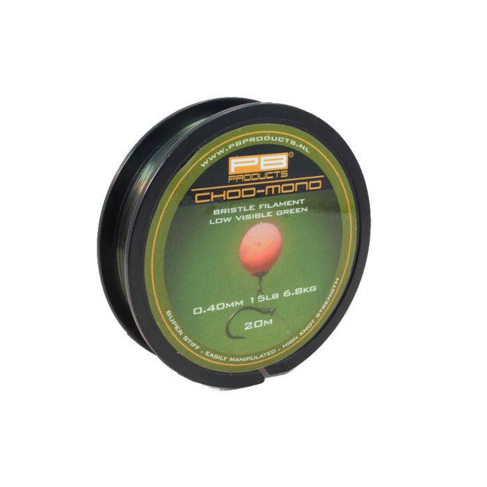 The Chod Mono from PB Products is the perfect monofilament hooklink material for chod rigs. This material is dark green and therefore hardly noticeable underwater. The advantage of this rigid material is that it keeps the hook in the right angle and during bait retrieval there is good pressure on the hook point, which makes the carp bite faster.