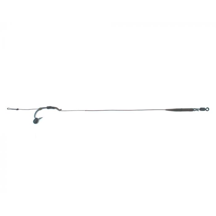 This extra weight can also be used to offer a completely different pop-up presentation. The hook position can be much sharper here thanks to the Shot-on the hook bead. This Rig is knotted with Jelly Wire 25lb and has the extremely good Anti Eject hook with mounted Long Shank Aligner. A Shot-on the hook bead is mounted on the hook bend. Of course, this underline is also equipped with a Speed Swivel 8 in combination with the Anti Tangle Sleeve. This rig is a solution for dressage waters!