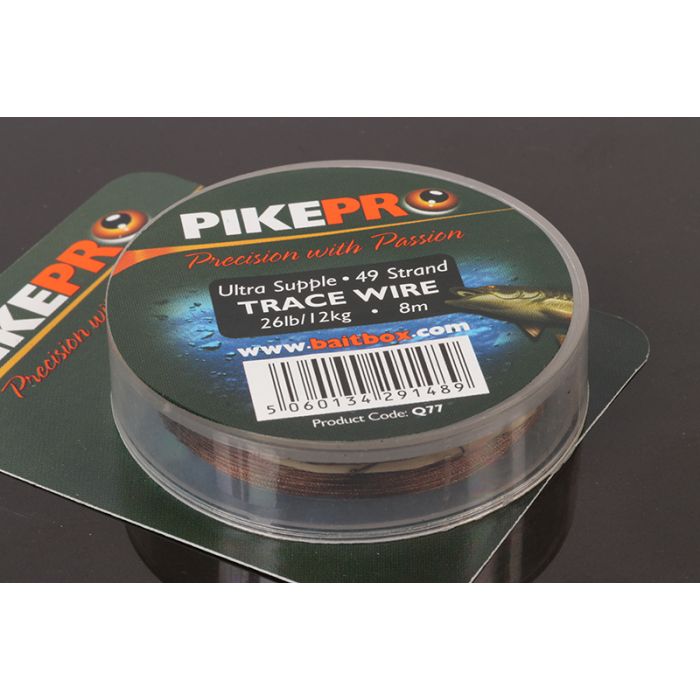 The 40lb breaking strain is our wire of choice in snaggy or weedy venues and when really big pike are likely to be encountered. For day-to-day pike fishing the 30lb is ideal. For zander we swap to the 20lb for its combination of exceptional suppleness and fine diameter.