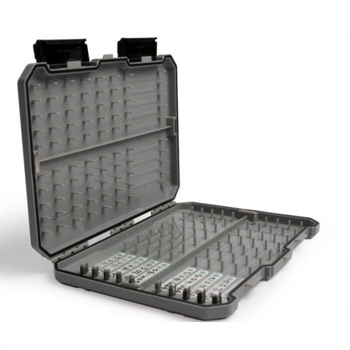 The All-Round Hooklength box is ideal for storing large amounts of hooklengths from 3” (75mm) up to 9” (225mm) long. The capacity is huge with the box featuring long pegs that will accommodate up to 20 hooks. There are 20 available positions for longer hooklengths up to 9” and 40 positions if hooklengths are 3 or 4” long meaning that up to 800 3 or 4” hooklengths can be stored. The gasket helps to prevent water from entering the box which is sealed by two clips and additional magnets on the sides. The box is constructed from an ultra-durable ABS plastic and has fixed pegs which are perfectly positioned and will not let you down. Each hooklength type can be clearly marked on the included labels