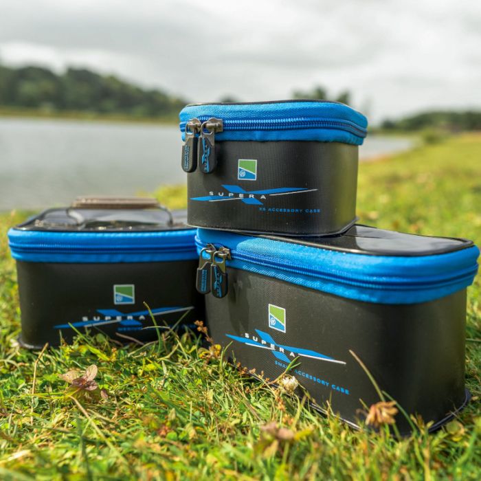 Preston Innovations Supera X EVA Accessory Cases, high quality wipe clean EVA storage available in a wide range of size options. All featuring strong Preston branded zips and with all but the biggest XL size coming with a clear lid.