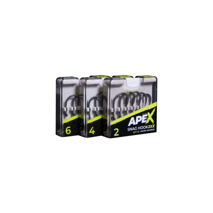 Combining many years of manufacturing and angling experience, the Ape-X hook range has been designed to cover every carp and specimen fishing situation. Extensively tested for over two years, our state of the art manufacturing processes utilise the most advanced hook point technology available which allowed us to create a range of hooks that are unrivalled in strength, sharpness and point durability ensuring you can use the Ape-X range in any scenario with 100% confidence.