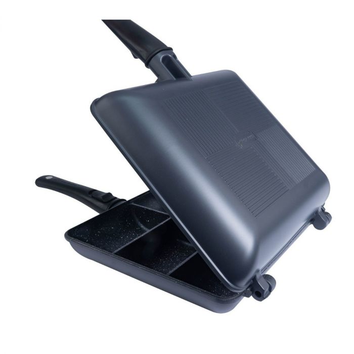 Why use several different pans when you can use just one? Featuring a deep-sided flat-bottom frying pan, a four-section pan, and a removable steamer tray, the RidgeMonkey Connect Combi & Steamer XXL Granite Edition will help you to create a different offering every day.
